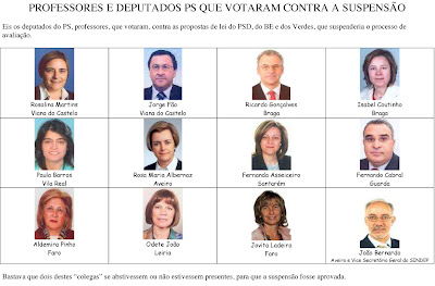 Esta dúzia de professores, deputados do Partido Socialista, votaram hoje ao lado do Governo e contra a proposta do CDS, que tentava dar força legal à vontade da esmagadora maioria dos professores, já manifestada de diversas formas.